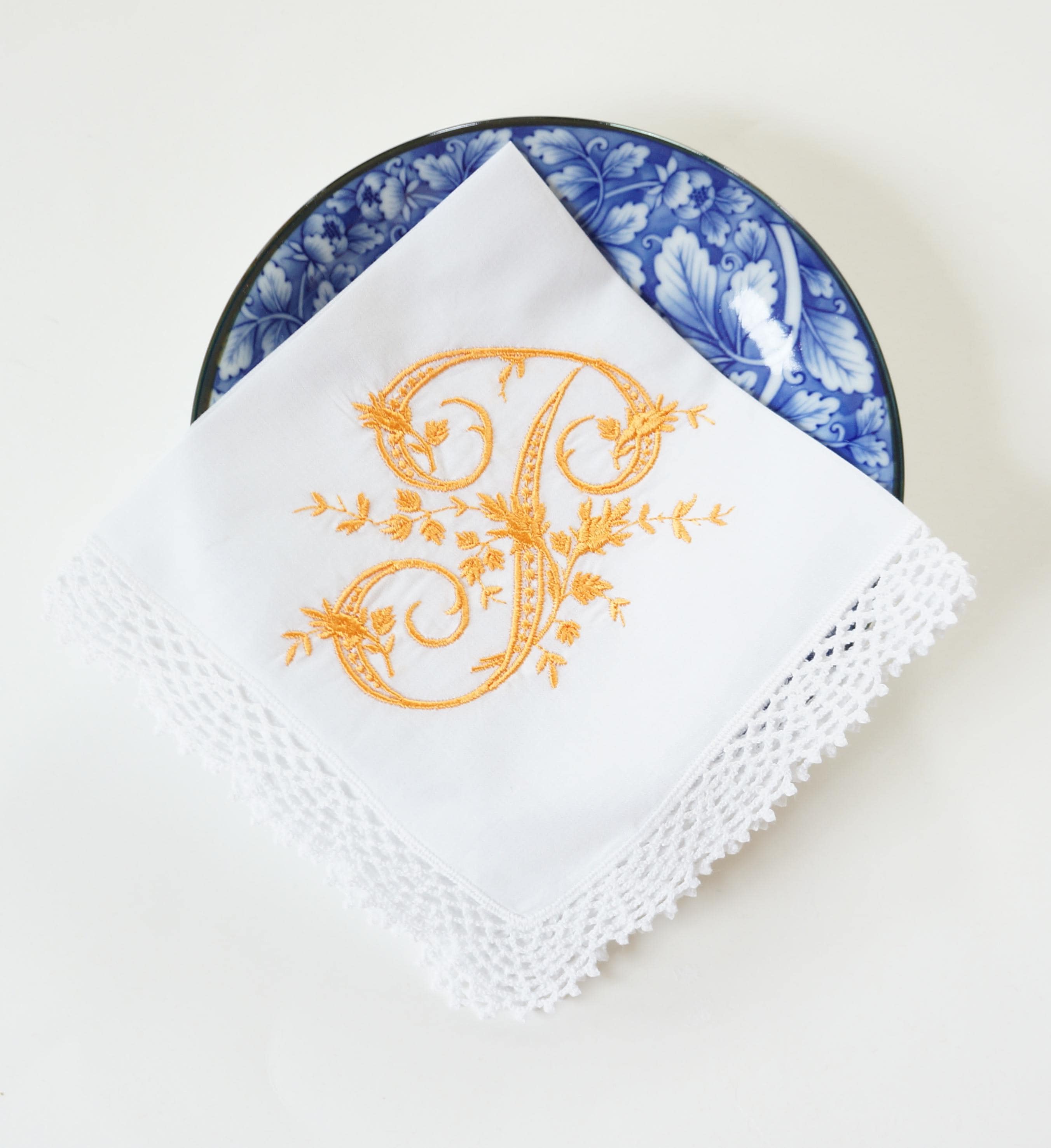 IF YOUR ORDER REQUIRES EXTENSIVE CUSTOMIZATION, such as written phrases, custom monograms, complex designs, etc., please place an order on the Custom Order listing for handkerchiefs, dinner napkins, cocktail napkins or towels.