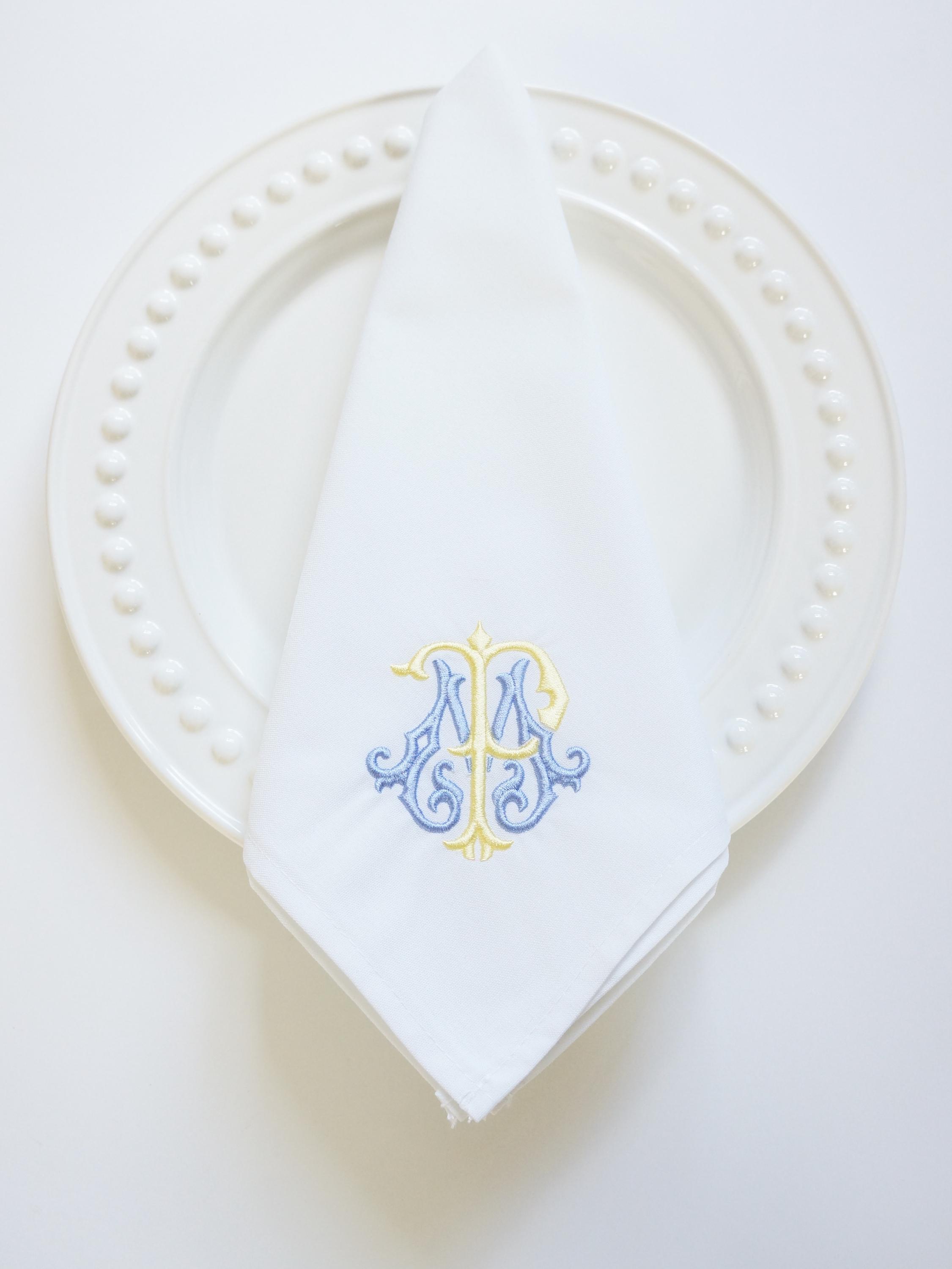 Monogrammed handkerchiefs, napkins and towels for weddings, special events and home.